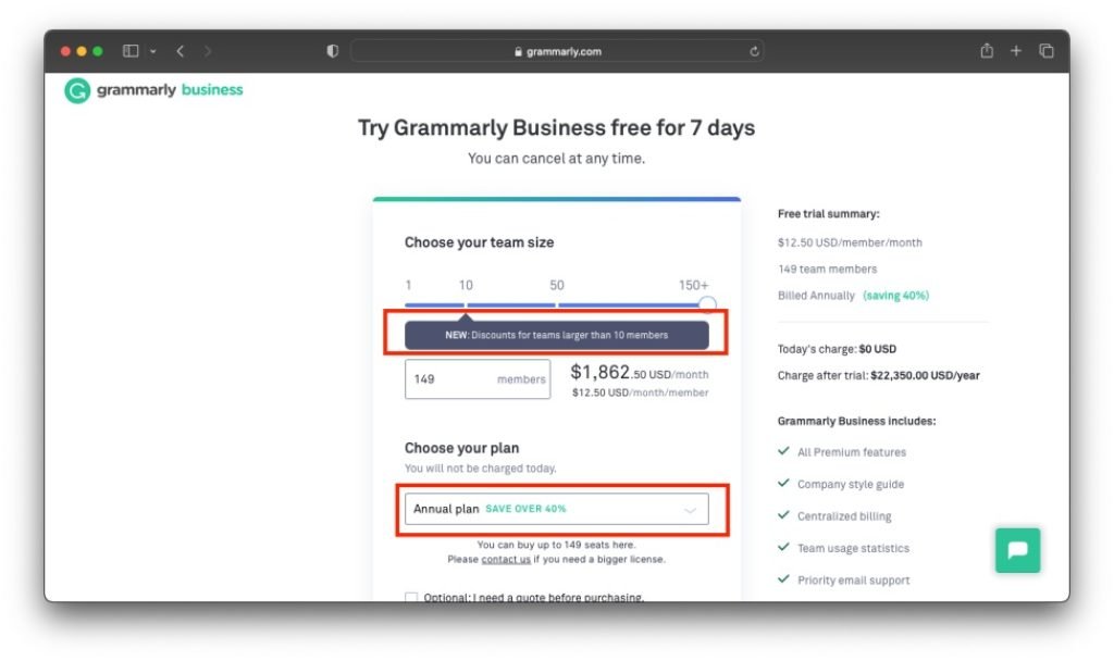 Furthermore, Grammarly provides 40% OFF on its business plan if you purchase annually. Moreover, Grammarly has a special discount for over 10 business plan members.
