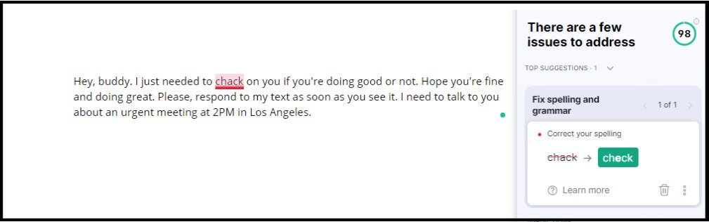 Grammarly automatically detects if you make a spelling mistake. It will underline it in red color, so it’s easy for you to see you’ve made a mistake. This is perfect for those who forget the spelling of some complicated words. It will automatically warn them about mistakes.